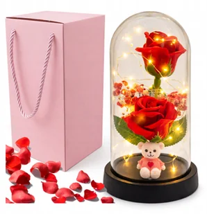 Wieczny kwiat róża podświetlana z misiem