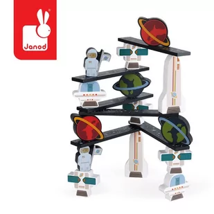 Gra zręcznościowa Kosmos francuskiej marki JANOD to wspaniała zabawa, zarówno dla kilkorga, jak i jednego dziecka. Zestaw składa się z 36 drewnianych brył, w tym postaci astronautów, planet, pojazdów i innych elementów konstrukcyjnych, z grafiką przestrzeni kosmicznej, z których tworzy się jak najwyższą budowlę, odpowiednio balansując klockami na jej kolejnych poziomach - tak, aby żaden z jej elementów nie spadł oraz aby całość jak najdłużej zachowała równowagę. Celem gry jest stworzenie jak najbardziej rozbudowanej i stabilnej konstrukcji. Gracz, który doprowadzi do upadku kosmicznej stacji - przegrywa. Gra ta ćwiczy koncentrację i zręczność.