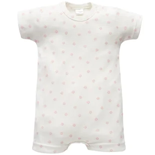 Bawełniany rampers w delikatnym kolorze. Zapinany jest w kroku i na lewym ramieniu na bezpieczne bezniklowe napki Posiada certyfikat „Bezpieczny dla dziecka” Rozmiar : 62
