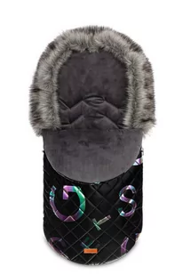 Zewnętrzną warstwę śpiworka Climber stanowi nieprzemakalny i wiatroodporny materiał, który sprawdzi się w zimą. Posiada on efektowny wzór z mieniących się liter. Śpiworek od wewnątrz wypełnia ciepły i miły w dotyku polar. Wypełnienie stanowi warstwa poliestrowej ociepliny zapewniająca odpowiednią izolację. Otwory na pasy 5-punktowe dają możliwość bezpiecznego przypięcia dziecka.