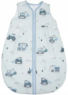 ŚPIWOREK NIEMOWLĘCY DO SPANIA ZE 100% BAWEŁNY Całoroczny Wzór: Koparki Niebieskie na Szarym Rozmiar: 104-110 cm Grubość: 2,5 TOG Śpiworek całoroczny dla niem...