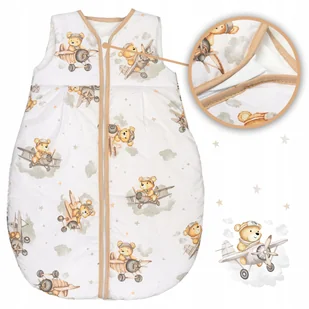 ŚPIWOREK NIEMOWLĘCY DO SPANIA ZE 100% BAWEŁNY Całoroczny Wzór: Miś w Samolocie Beżowy Rozmiar: 56-62 cm Grubość: 2,5 TOG Śpiworek całoroczny dla niemowląt wy...