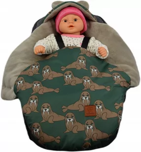 Śpiworek posiada kapturek osłaniający główkę dziecka. Kolorystyka tkanin, zabawne uszka na kapturku powodują, że śpiworek i mieszczone dziecko stają się urocze. Aby dokładnie otulić dziecko zastosowano system zapięcia przy pomocy odpowiednio rozmieszczonych NAP TYPU SPRING Wymiary całkowite szer 88 cm/dł 80 cm (+- 2 cm) Prać w temperaturze 30 stopni C, przy użyciu łagodnych środków piorących. Wirować na bardzo małych obrotach. Nie suszyć w suszarkach bębnowych.