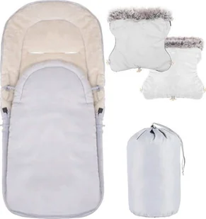 Springos Śpiworek do wózka 4w1, mufka, śpiwór do sanek, gondoli z torbą 90 cm szaro-beżowy UNIWERSALNY