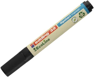 Czarny marker do flipchartów Edding 32 EcoLine. Co najmniej 90% plastikowych elementów zostało wykonanych z materiałów z recyklingu.