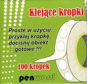 Opakowanie zawiera 100 sztuk klejących kropek, które można użyć np. do pakowania prezentów, prac introligatorskich, przyklejenia zdjęć, przyklejenia tkanin do papieru lub do wykonywania dekoracji.