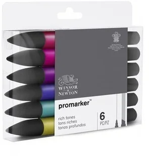 Zestaw zawiera kolory: Cardinal Red, Maroon, Plum, Prussian, Marine, Moss. W środku markera znajduje się stworzony do mieszania i budowania przejść tonalnych tusz. Wysokiej jakości końcówki zapewniają krycie płaszczyzn bez pozostawiania widocznych pociągnięć markera. Wszechstronne: