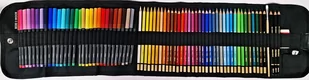 Zestaw MONDELUZ 72 ELEMENTY KREDKI + CIENKOPISY 7021 ZESTAW ZAWIERA: 30 CIENKOPISÓW KOH-I-NOOR 36 KREDEK AKWARELOWYCH MONDELUZ PĘDZEL SYNTETYCZNY PŁASKI NR 4 3 OŁÓWKI GRAFITOWE AKWARELOWE GIOCONDA GUMKA FACTIC S24 TEMPERÓWKA POJEDYŃCZA KAMET Cały zestaw zapakowany jest w poliestrowe zwijane etui zapinane na zatrzask Cienkopisy 30 kolorów przeznaczone głównie do pisania, szkicowania i rysowania na papierze, ergonomiczny, trójboczny kształt są wygodne w użytkowaniu zawierają tusz na bazie wody, są spieralne z większości tkanin posiadają końcówkę o grubości 0,3 mm, która dzięki specjalnej technologii tuszu nie zasycha przez dłuższy czas bez skuwki świetnie sprawdzają się przy wymagających precyzji zadaniach, jako narzędzie do ozdabiania tekstu oraz robienia notatek. Mondeluz artystyczne kredki akwarelowe serii 3720 zestaw zawiera 36 kolorów Oprawki kredek wykonane są z najwyższej jakości drewna cedrowego i wielokrotnie pokryte bardzo odpornym lakierem Końcówki kredek są pomalowane na złoty kolor Grafity zawierają najwyższej jakości pigmenty, które zostały starannie dobrane i wyselekcjonowane Odznaczaja się głębią koloru i intensywnością barw Wysoka odporność na działanie światła, wpływa na końcowy efekt i trwałość wykonanej pracy Kredki 2 w 1: można je stosować na sucho, jak zwykłe kredki; można je rozmywać pędzelkiem z użyciem wody uzyskując efekt akwareli Bardzo trwałe oprawki, nie łamią się w trakcie temperowania Cały zestaw zapakowany w poliestrowe czarne etui na zatrzask Pędzel płaski przeznaczony jest do malowania: pojedynczych pociągnięć, cienkich i grubych lini, wykonany jest z nylonu, trzonek pędzla wykonany jest z lakierowanego drewna, włosie umieszczone jest bezszwowo w metalowej skuwce.