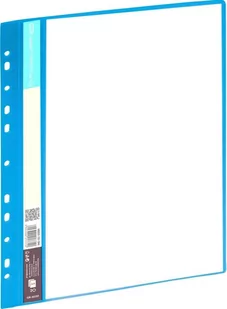 Grzbiet z europerforacją, wewnętrzne przezroczyste kieszenie A4, 20 kieszeni, przednia okładka przezroczysta, tylna kolorowa, wymienna listwa opisowa, zaokrąglone rogi.
