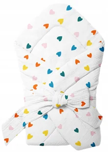 Rożek muślinowy z rzepem i wiązaniem Rozmiar: 75x75 cm. Wzór: Serduszka Materiał: najwyższej jakości muślin kreszowany z certyfikatem OEKO Uroczy muślinowy r...