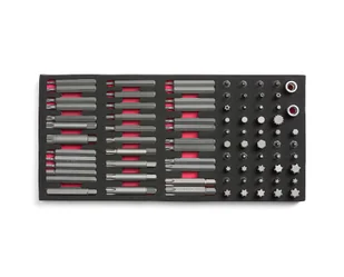 Zestaw 83 nasadek. Zestaw zawiera: adapter do gniazd 3/8" i 1/2" , 36 nasadek (Torx, Hex, RIBE, XZN) 10 x 75 mm ; 45 nasadek(Torx, Hex, RIBE, XZN, TXT) 10 x 30 mm . 2 adaptery81 elementówDo wielu zastosowańZestaw 81 różnych nasadek do wielu zastosowań. Zawiera rówież adaptery do gniazd 3/8" i 1/2".