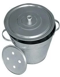 Duży estetyczny kocioł, wykonany z blachy ocynkowanej, wyposażony w uchwyty boczne, pokrywkę oraz blaszaną dziurkowaną wkładkę na dno, zapobiegającą przyklejaniu do dna gotowanej zawartości kotła.