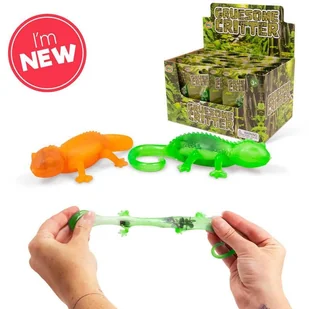 Jaszczurka z robakami MIX One for Fun. Zabawka. Rozciągnij i ściśnij jaszczurkę, aby zobaczyć obrzydliwe robaki i pająki w środku! Dostępne w kolorze pomarańczowym i zielonym