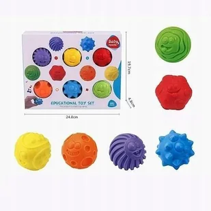 Miękkie kule sensoryczne do zabawy dla maluszka, również w kąpieli. Dziecko chwytając piłeczki odkrywa różne kształty oraz faktury.