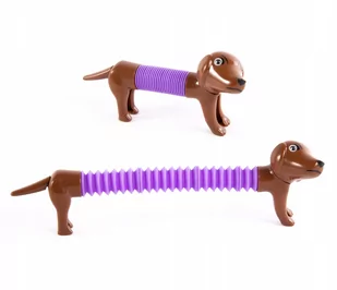 ZABAWKA SENSORYCZNA POP TUBE rozciągliwy piesek, figurka ze sprężyną, długość przed rozciągnięciem 14cm, długość po rozciągnięciu 25cm. Figurka ulubionego dziecięcego zwierzaka teraz w nowej odsłonie! Zabawkę można rozciągać, obracać i zmieniać jej kształt w nieskończoność. Dzięki zastosowaniu rurki typu POP TUBE zabawka zapewnia dodatkowe doznania dźwiękowe podczas rozciągania i składania rurki. Fantastyczna zabawka antystresowa, idealny gadżet dla dzieci oraz dorosłych. Wymiary zabawki w postaci złożonej: