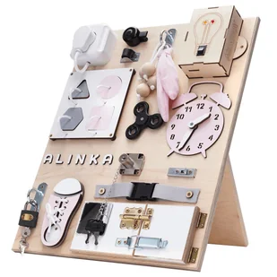 Średnia tablica manipulacyjna - żarówka - róż 2️⃣1️⃣ elementów ❗ Certyfikacja: CE, EN-71, farb użytych do produkcji ✔ Polski produkt - ręcznie wykonany W cen...