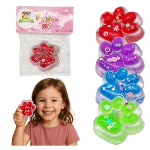 ZESTAW 4 sztuki GNIOTEK kocia łapka PACHNĄCA antystresowa SQUISHY kotek Zestaw 4 antystresowych zabawek kocie łapki squishy Komplet 4 miękkich, żelowych zabawek w kształcie kocich łapek to jeszcze więcej radości i relaksu! W zestawie znajdziesz aż cztery kolory: zielony, czerwony, niebieski i fioletowy. Każda łapka jest obsypana kolorowymi ozdobami i brokatem, które przesuwają się podczas ściskania. Idealne do zabawy, odstresowania i ćwiczenia dłoni – zarówno dla dzieci, jak i dorosłych. ZALETY: