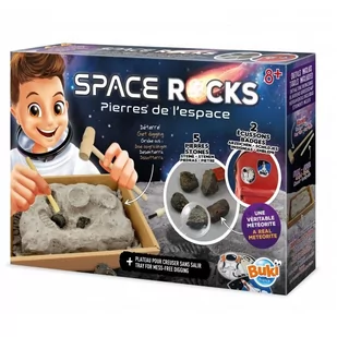 Użyj narzędzi, aby wykopać i poznać pięć kamieni z kosmosu, w tym prawdziwy kamienny meteoryt i tektyty. Do odkopania również 2 samoprzylepne naszywki imitujące styl prawdziwych naszywek agencji kosmicznych. Możesz je przykleić na tekstyliach takich jak torebka czy plecak.