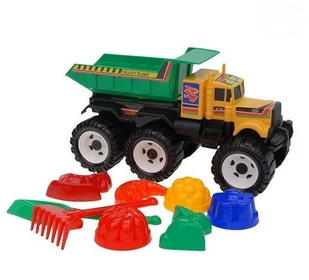 LESZ 115 Wywrotka mała z dodatkami. Zawartośc opakowania: - łopatka - grabki - 6x foremka Wymiary długość: 40cm szerokość: 16 cm wysokość: 21,5 cm waga: 0.