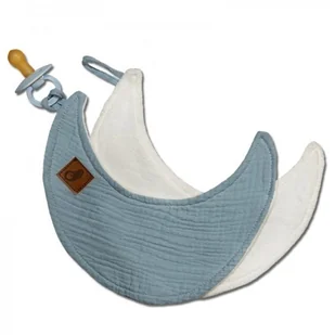 Przytulanka Dou Dou Z Zawieszką Z Organicznej Bio Bawełny Gots Cozy Muslin Pacifier Keeper Moon Baby Blue Hi Little One