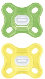 MAM MAM Zestaw 2 smoczek 100% silikonowy idealny dla noworodków z torbą do noszenia 0-2 miesiące zielony i żółty