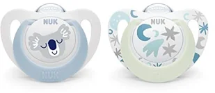NUK NUK Star Night & Day smoczek dla niemowląt | 0-6 miesięcy | Świecące smoczki | Silikon bez BPA | Koala niebieski | 2 sztuki