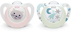 NUK NUK Star Night & Day smoczek dla niemowląt | 0-6 miesięcy | Świecące smoczki | Silikon bez BPA | Różowy kot | 2 sztuki
