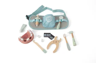 Drewniany zestaw MAŁY DENTYSTA dla dzieci DANTOYNauka przez zabawę z uśmiechem!Czy Twoje dziecko jest gotowe na otwarcie własnego gabinetu stomatologicznego? Ten uroczy zestaw dentystyczny od Dantoy pozwala wcielić się w rolę prawdziwego dentysty – badać, leczyć i dbać o zdrowe uśmiechy wszystkich pacjentów. W komplecie znajdziesz wszystkie niezbędne akcesoria do zabawy w stomatologa: -model zębów z wyjmowanymi ząbkami do nauki szczotkowania i leczenia,-szczypce dentystyczne do „ekstrakcji” – bez bólu i stresu,-lusterko do sprawdzania, czy uśmiech jest idealnie czysty,-strzykawkę, pastę i szczoteczkę do zębów,-zdjęcia rentgenowskie do diagnozowania problemów,-dodatkowe akcesoria, które sprawią, że wizyta u dentysty stanie się zabawą. Całość wykonana jest z wysokiej jakości drewna w stonowanych, pastelowych barwach – bezpiecznych, estetycznych i przyjemnych w dotyku. Zalety edykacyjne, rozwojowe i społeczne zabawki: