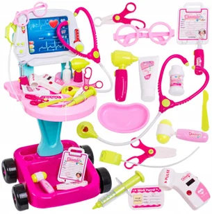 Mały Doktor Lekarz Zestaw Lekarski Różowy Wózek Mobilny Akcesoria
