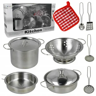 GARNKI DLA DZIECI AKCESORIA KUCHENNE METALOWE ZESTAW GARNKÓW PATELNIA 11el. Z2223