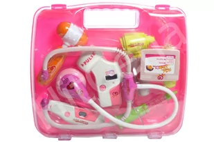 - stetoskop - lusterko z podświetleniem do oglądania gardła - młoteczek lekarski - termometr - strzykawka - pęseta efekty świetlne i dźwiękowe przy użyciu stetoskopu całość zapakowana w wygodną walizkę niektóre elementy zasilane bateriami (w zestawie) Uwaga! Produkt nieodpowiedni dla dzieci poniżej 3 roku życia.