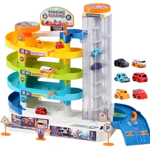 Parking, tor dla autek z pewnością przypadnie do gustu każdemu fanowi czterech kółek. Zabawka składa się z aż czterech pięter zjazdów oraz posiada po cztery miejsca parkingowe na każdym piętrze. Parking wyposażony jest w lądowisko dla helikopterów. Jednak największą atrakcją niewątpliwie jest ruchoma wina, dzięki której można szybko wywieźć samochodzik z parteru na ostatnie piętro.