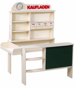 Roba sklepy dla dzieci, drewniane sklepy z 4 szufladami, zegar, tablica, lady i boki, białe lub naturalne, dostępne z akcesoriami i bez bez akcesori naturalny