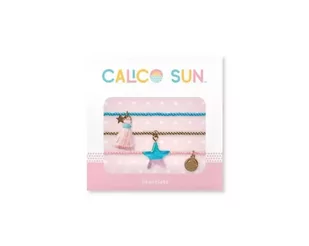 Bransoletka ze złotych koralików z wisiorkiem w kształcie gwiazdy. Bransoletka z turkusowych koralików z ozdobną złotą gwiazdką i różowym frędzelkiem. Bransoletka z różowych koralików ze złotą zawieszką z logo Calico Sun. Elastyczne - pasują na wszystkie rączki. ➡️✔️ Wydawnictwo/Producent: