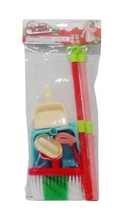 Zestaw do sprzątania dla małych porządnickich. W zestawie m.in.: miotła, szufelka, zmiotka, gąbka, mydło. #&Produkt zapakowany w przezroczysty worek.#&Zabawk...
