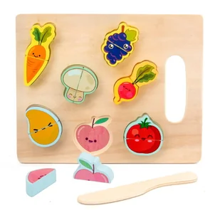 Zestaw drewniany do krojenia owoców i warzyw z deską i nożem 22x18 cm Zestaw do krojenia owoców i warzyw wykonany z drewna to idealne akcesorium dla każdej k...