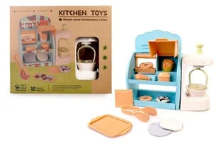 W zestawie: mini regał z mikserem, tacka, szczypce, 9 rodzajów wypieków, funkcje: naciśnięcie przycisku wprawia mieszadełka miksera w ruch, wymiary zabawki: 22 x 20 x 7 cm, wymiary opakowania: 27 x 23 x 7,5 cm, 3+
