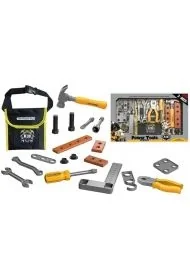 - miarka- młotek- kombinerki- śrubokręt- 2 klucze- 2 dodatkowe końcówki do śrubokręta- 2 śruby- 2 nakrętki- 3 deseczki- 3 elementy do dokręcania- nerka na narzędziaPozostałe informacje: