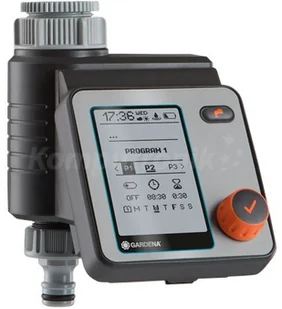 Automatyczne, oszczędzające czas nawadnianie Dzięki sterownikowi nawadniania GARDENA, ogród będzie zawsze skutecznie podlany, nawet pod nieobecność użytkownika, który zyskuje więcej wolnego czasu, bujny, zielony trawnik oraz piękne, zdrowe rośliny. Jeżeli automatyczny system nawadniania uruchamiany jest wczesnym rankiem lub pod wieczór, wyparowuje mniej wody, a to przekłada się na większą oszczędność i zapewnia precyzyjne, optymalne nawodnienie. Łatwa obsługa Sterownik nawadniania można w prosty sposób ustawić za pomocą obrotowego przełącznika z przyciskiem, umożliwiającego wybór i zatwierdzanie danych. Wszystkie ustawienia widoczne są na czytelnym wyświetlaczu LCD. Odporne na działanie warunków atmosferycznych urządzenie można zdjąć, by wprowadzić ustawienia.