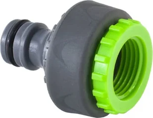 Przyłącze do węży ogrodowych. Posiada gwint wewnętrzny oraz redukcję 1/2" - 3/4". Wykonane z tworzywa ABS, pokryte gumą termoplastyczną TPR.
