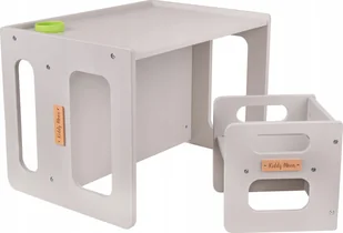 Meble mają zaokrąglone krawędzie, co znacząco wpływa na ich bezpieczeństwo. Blat posiada niewielki rant, który skutecznie zapobiega spadaniu rzeczy ze stolika. Specjalnie wycięty otwór z miękkim kubeczkiem pozwala na postawienie w nim przyborów. Odwracając stolik możesz stworzyć ławkę dla dwojga dzieci. Analogicznie - gdy przekręcisz krzesełko, możesz dopasować je do wzrostu Twojej pociechy.