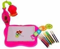 Za pomocą rzutnika można - kopiować OBRAZKI Z RZUTNIKA - OBRAZKI MOŻNA TEŻ WYŚWIETLAĆ NA ŚCIANIE - MALOWAĆ I TWORZYĆ WŁASNE WYMYŚLONE MALUNKI WYMIARY -wymiary podstawy 27cm x 22cm -wymiary pola do rysowania 20cm x 16cm -wysokość ramienia rzutnika 28cm Rzutnik ma regulowane kąty nachylenia dlatego można go używać na samej tablicy jak i wyświetlać obrazki na ścianie. Można go całkowicie złożyć i schować do szuflady-zajmuje niewiele miejsca po złożeniu. Zastosowanie rzutnika jest szerokie, można wyświetlać obrazki typu (zwierzątka, samochodziki, różnego rodzaju posiłki...) na tablicy, ale i także na ścianie wieczorem. Tablica bardzo ładnie wykonana sprawi wiele frajdy podczas zabawy.
