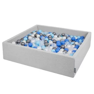 KiddyMoon, suchy basen kwadratowy z piłeczkami 7cm 120x30 jasnoszary: perła-niebieski-babyblue-transparent-srebrny 120x30/600piłek