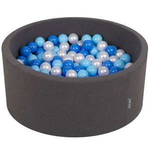 KiddyMoon Suchy basen okrągły z piłeczkami 7cm 90x40 ciemnoszary błękitny-niebieski-perła 90x40cm/200piłek Zabawka basen piankowy