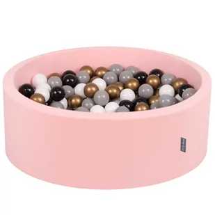 KiddyMoon Suchy basen okrągły z piłeczkami 7cm różowy: biały-szary-czarny-złoty 90x30cm/200piłek Zabawka basen piankowy