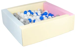 Kwadratowy suchy basen z ekoskóry z 300 piłeczkami (różowy, niebieski, żółty (pastel)/biały, niebiski, szary)