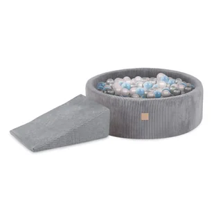 MISIOO Plac zabaw Suchy basen 90x30 + trójkąt (+200 piłek: perłowy srebrny jasnoniebieski) szary sztruks premium