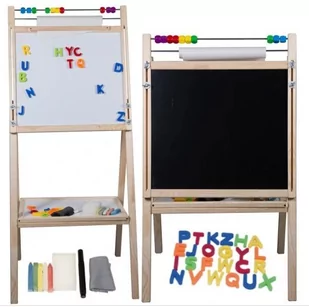Drewniana, regulowana tablica magnetyczno-kredowa to świetny pomysł na kreatywną zabawę Twoich Pociech. Nauka przez zabawę to najlepszy sposób na prawidłowy rozwój dzieci. Tablica jest idealnym miejscem na ćwiczenie pierwszych literek oraz cyferek. To także świetne miejsce do rozwijania zmysłu artystycznego przez wykonywanie wspaniałych rysunków. Z jednej strony jest to tablica do pisania markerami, z drugiej - tablica kredowa.