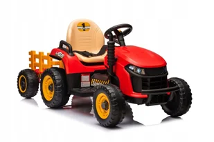 Traktor Na Akumulator z Przyczepą 2 Silniki 12V Skóra Koła EVA Czerwony