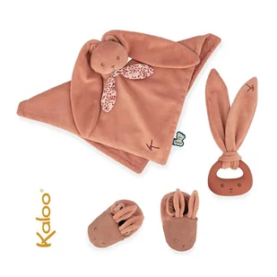Uroczy zestaw prezentowy 3 w 1 Królik francuskiej marki KALOO to idealny pierwszy podarunek dla niemowlaka, bezpieczny od pierwszych dni życia. Zawiera piękne i perfekcyjnie wykończone akcesoria w kolorze zgaszonej terracotty: kwadratowy dwustronny komforter z główką króliczka, silikonowy dwustronny gryzak (gładki + fakturowany) z długimi uszami oraz miękkie kapciuszki z króliczym pyszczkiem i uszkami. Zabawki wspierają rozwój sensoryczny dziecka, m. in. chwytanie czy ugniatanie, przynoszą ulgę w trudnym okresie ząbkowania oraz pomagają się wyciszyć.
